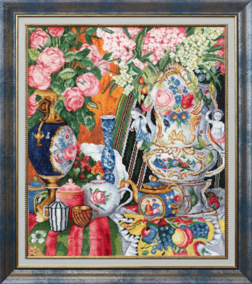 Сюжет для вышивания создан по мотивам картины А. Я. Головина – выдающегося русского художника и графика. Мир цветов и фарфора живет своей жизнью в волшебном царстве, в котором вазы напоминают одновременно сказочные деревья и башни зачарованного замка. Яркая проработка каждой детали делает картину емкой, объёмной и живой, и сам натюрморт напоминает роскошно орнаментированный ковер.| Скидка | 3 % | 5 % | 7 % | 10 % | 15 % |